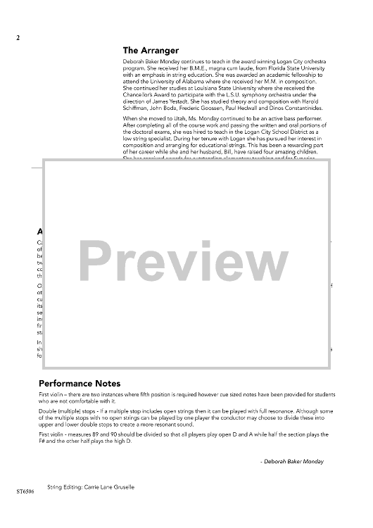 This brilliant march in grand concert style works beautifully for strings! A powerful melodic line combines with strong rhythms and moving harmonic shifts as the piece unfolds. After a wonderful exchange of the opening themes, the piece moves into an energetic coda with a riveting ending. A perfect performance piece at concert or festival as well as an ideal change of pace for any program! (2:00)