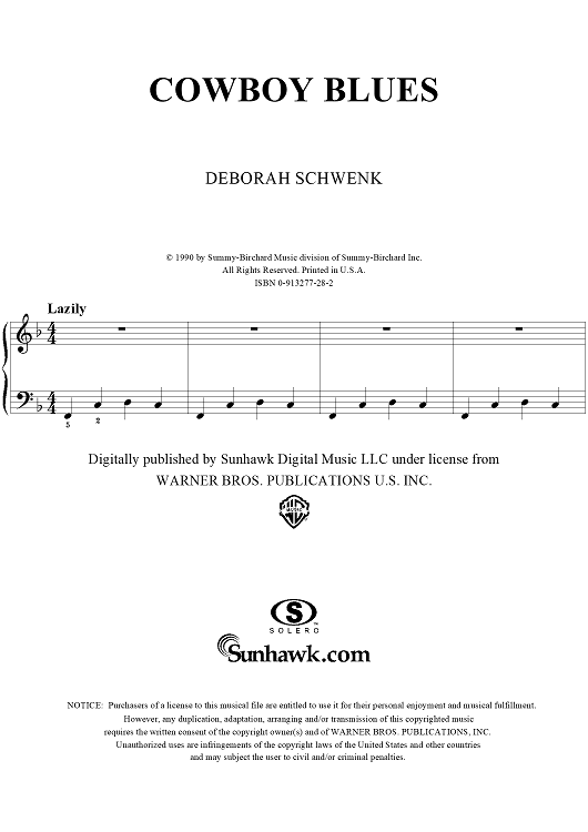 "Cowboy Blues" Sheet Music by Deborah Schwenk