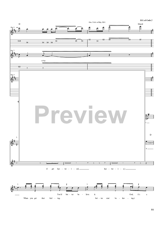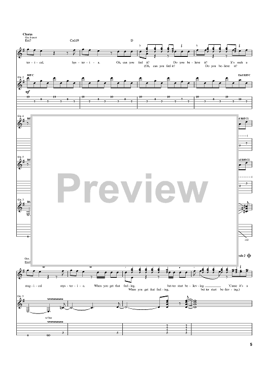 Digital Sheet Music for Hysteria by Steve Clark, Def Leppard, Robert Lange, Joe Elliott, Phil Collen, Richard Allen, Rick Savage scored for Guitar Tab; id:392231