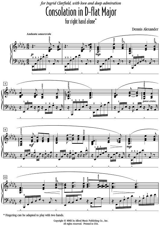 "Consolation in D-flat Major (for right hand alone)" Sheet Music by Dennis Alexander