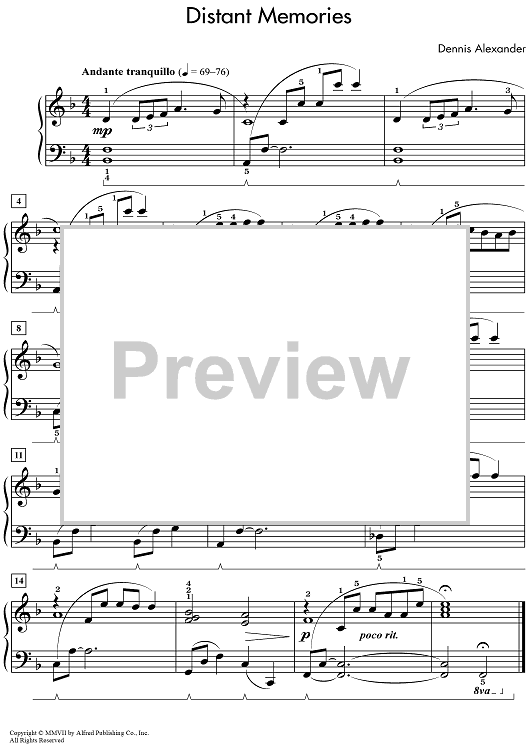 Digital Sheet Music for Distant Memories by Dennis Alexander scored for Piano Solo; id:469124