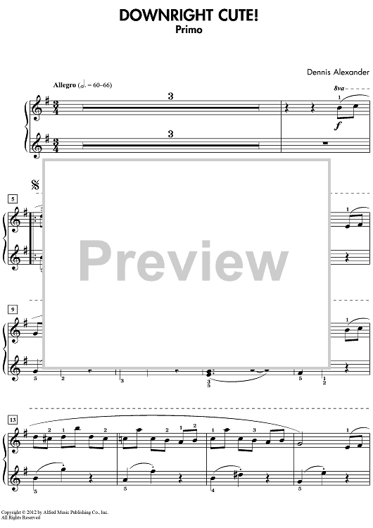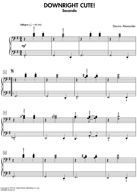 Digital Sheet Music for Downright Cute! by Dennis Alexander scored for 1 Piano, 4 Hands; id:501707