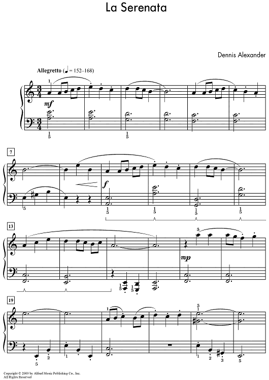 Digital Sheet Music for La Serenata by Dennis Alexander scored for Piano Solo; id:469182