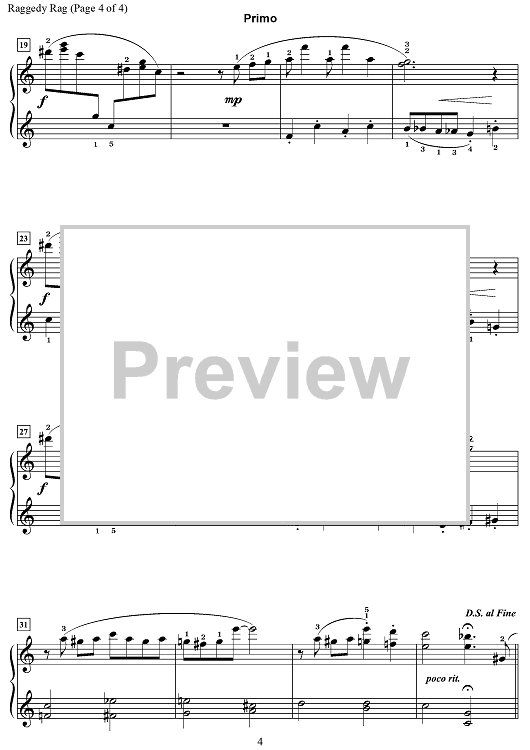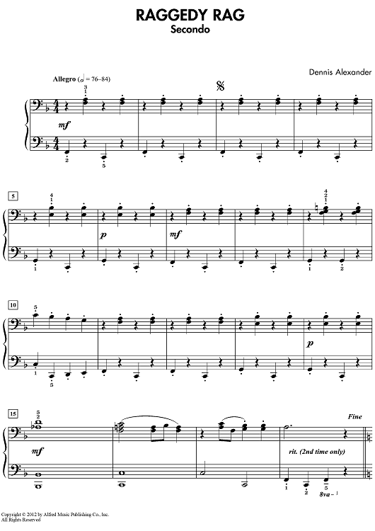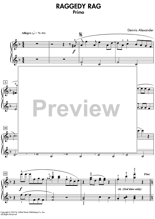 Digital Sheet Music for Raggedy Rag by Dennis Alexander scored for 1 Piano, 4 Hands; id:501713