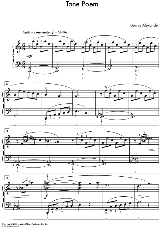 Digital Sheet Music for Tone Poem by Dennis Alexander scored for Piano Solo; id:469188