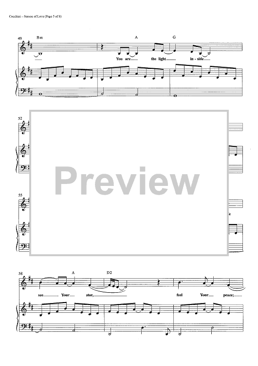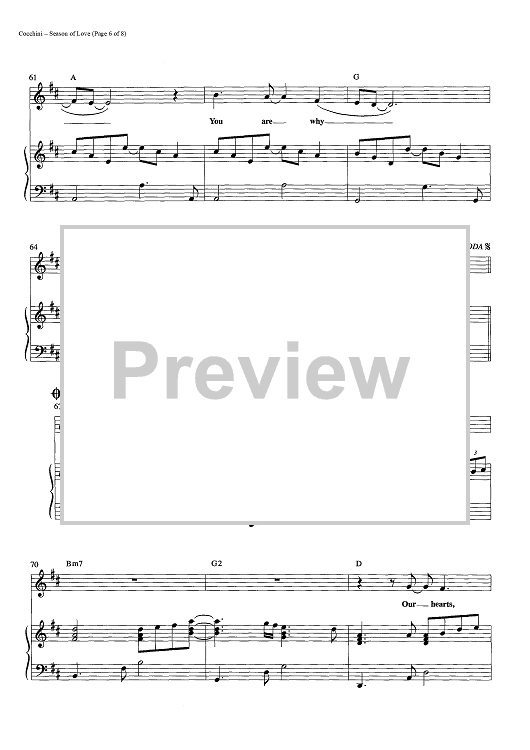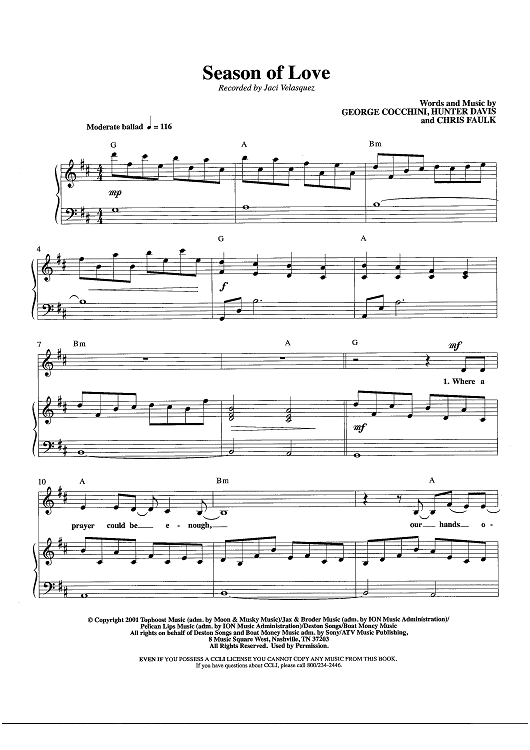 Digital Sheet Music for Season Of Love by Jaci Velasquez, George Cocchini, Hunter Davis, Chris Faulk scored for Piano/Vocal/Chords; id:438279