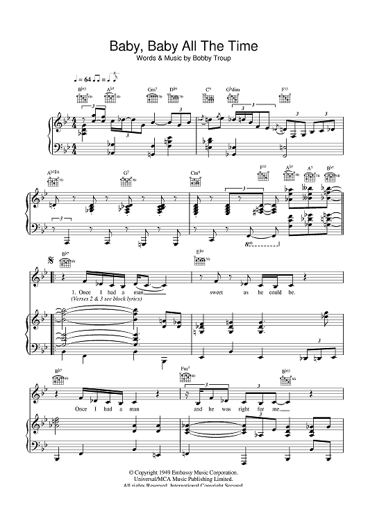 Digital Sheet Music for Baby, Baby All The Time by Diana Krall scored for Piano/Vocal/Chords; id:377952