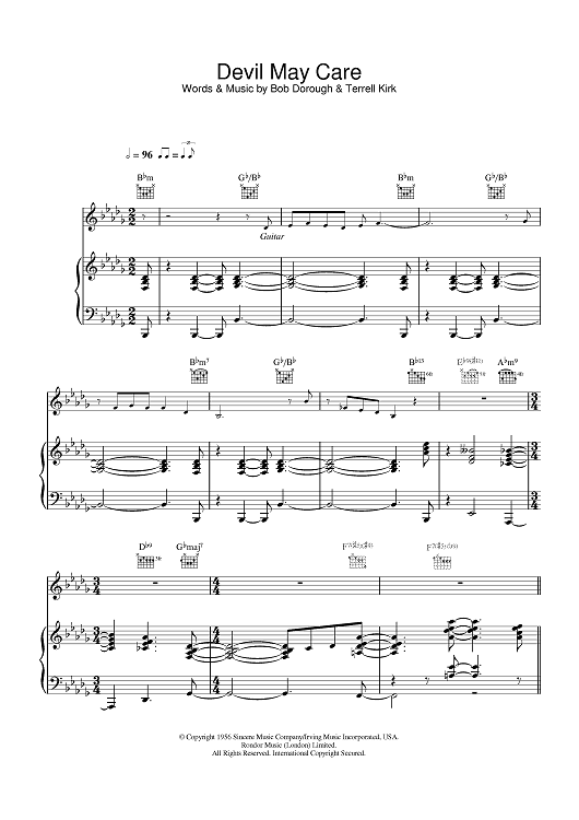 Digital Sheet Music for Devil May Care by Diana Krall scored for Piano/Vocal/Chords; id:376825
