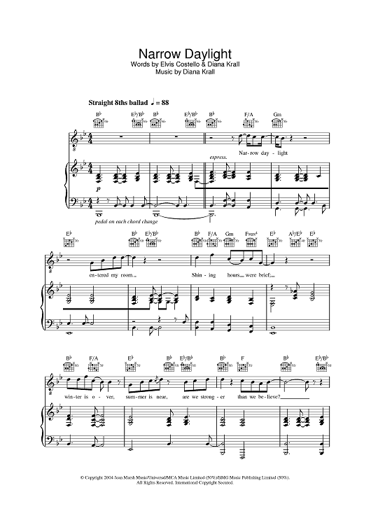 Digital Sheet Music for Narrow Daylight by Diana Krall scored for Piano/Vocal/Chords; id:378484