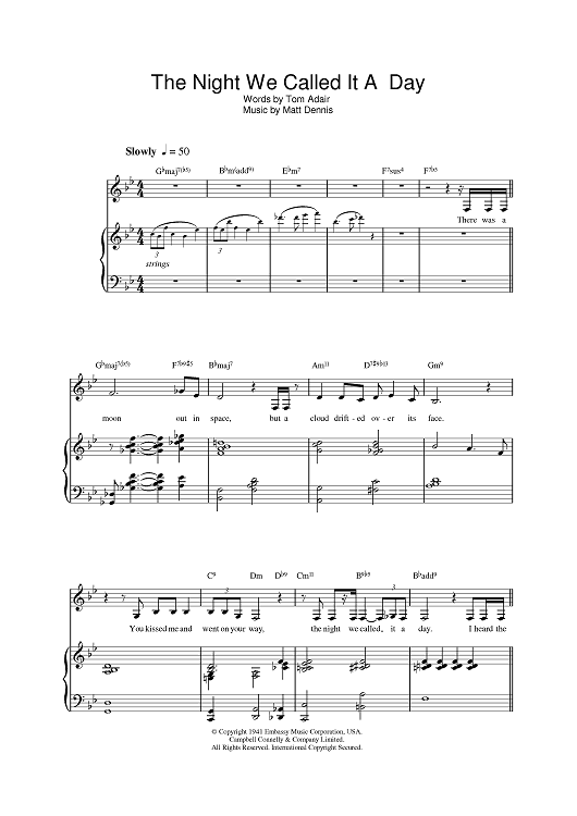 Digital Sheet Music for The Night We Called It A Day by Diana Krall, Matt Dennis, Tom Adair scored for Piano/Vocal/Chords; id:397074
