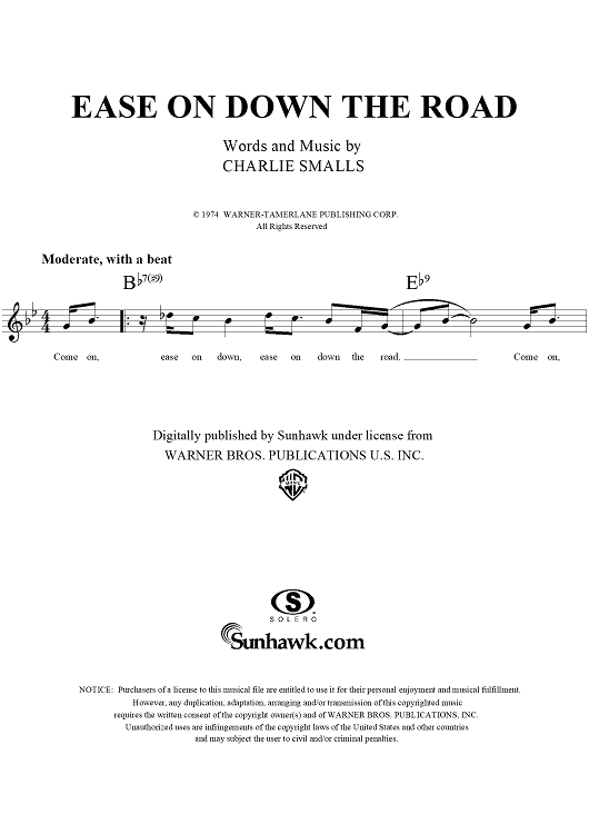 Digital Sheet Music for Ease On Down the Road by Diana Ross, Charlie Smalls scored for Lead Sheet; id:120039