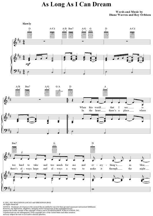 Digital Sheet Music for As Long As I Can Dream by Diane Warren, Exposé, Roy Orbison scored for Piano/Vocal/Chords; id:111957