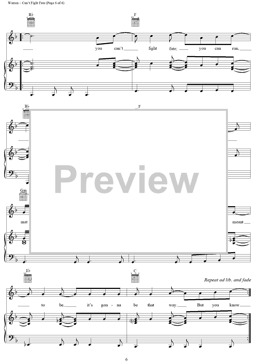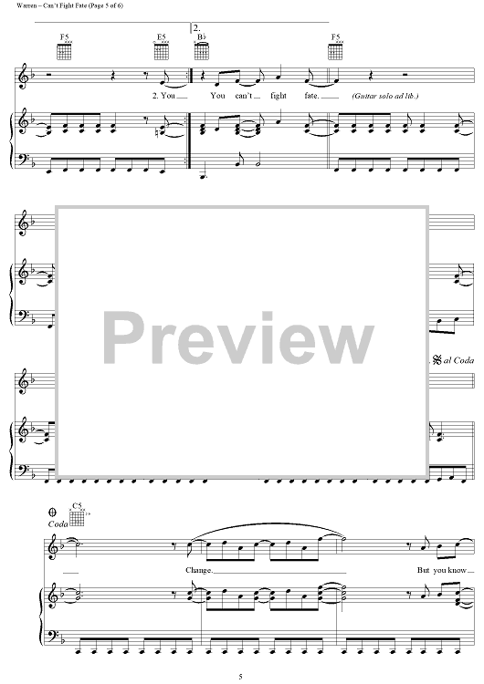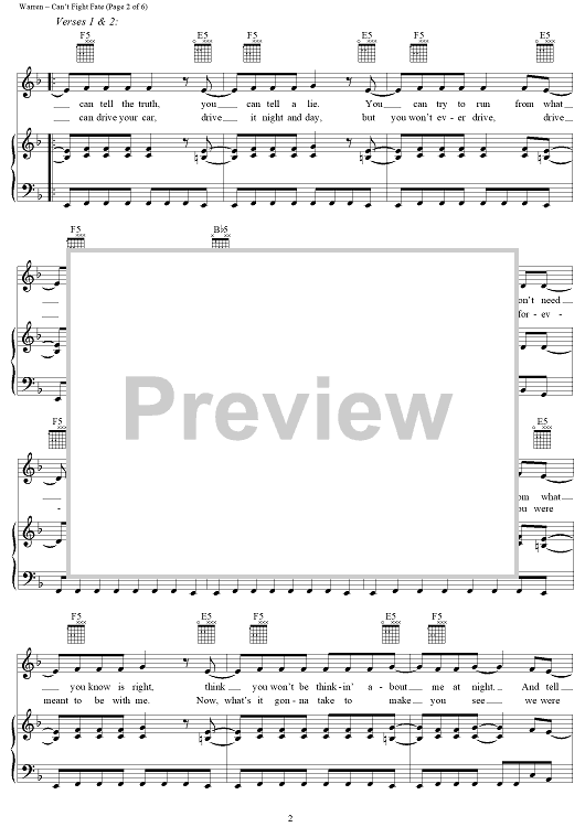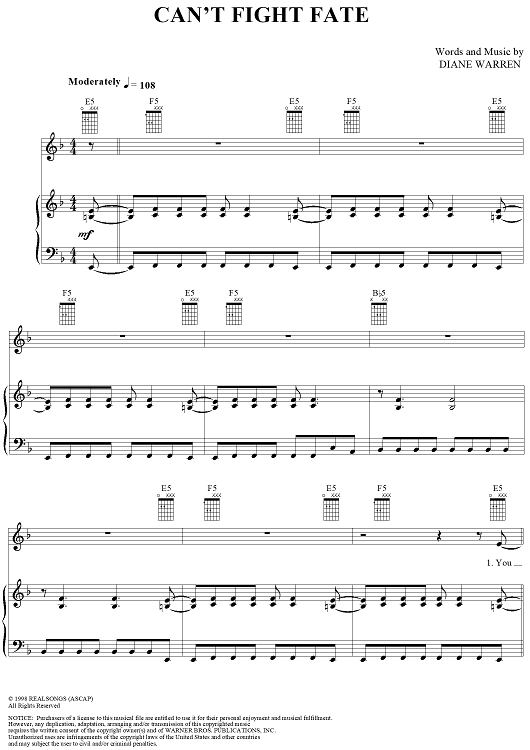 Digital Sheet Music for Can't Fight Fate by Diane Warren, Taylor Dayne scored for Piano/Vocal/Chords; id:120773