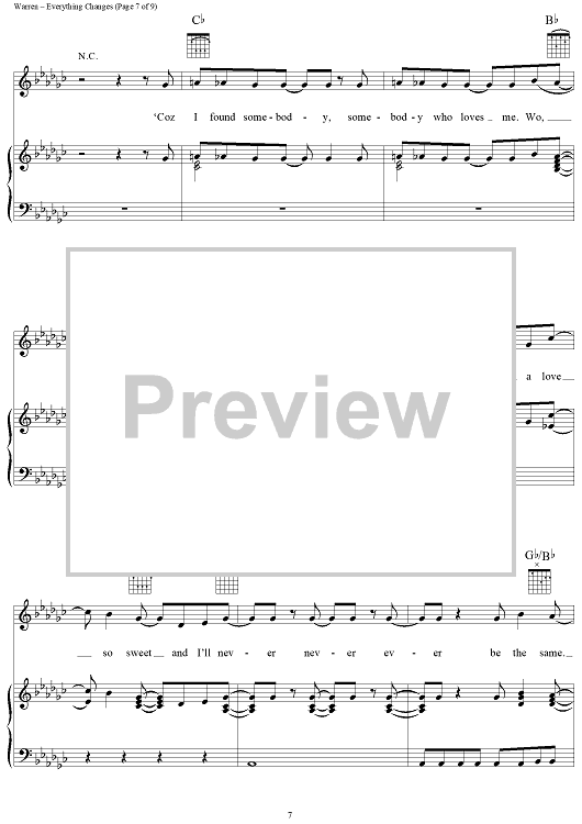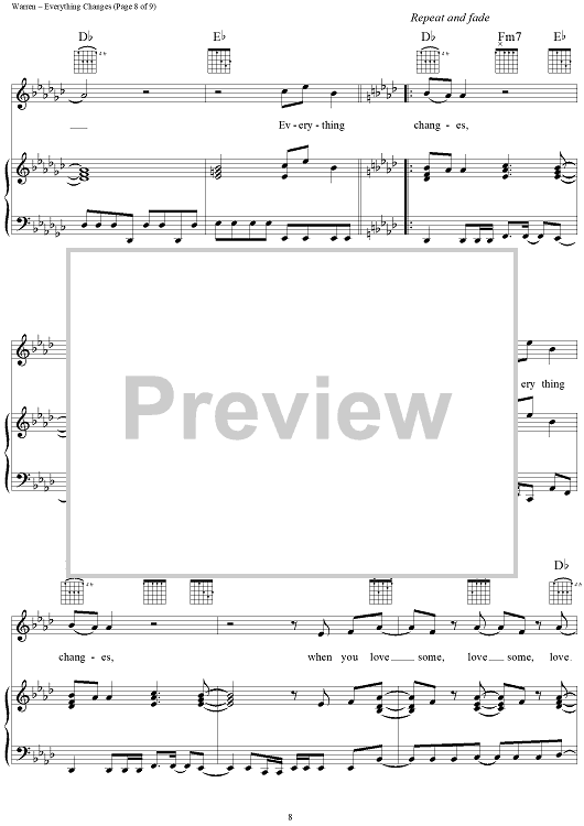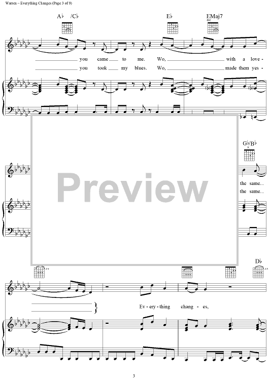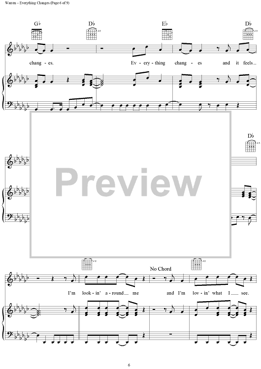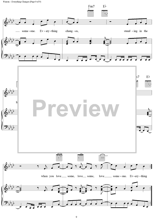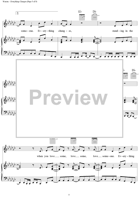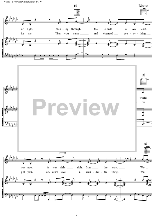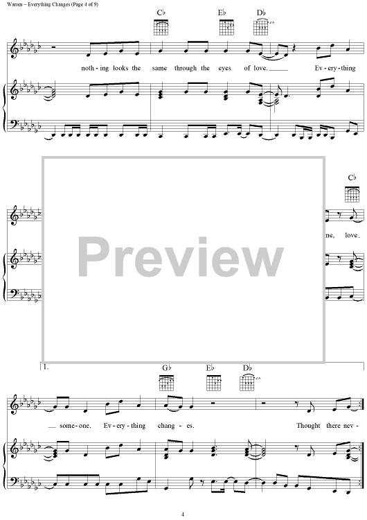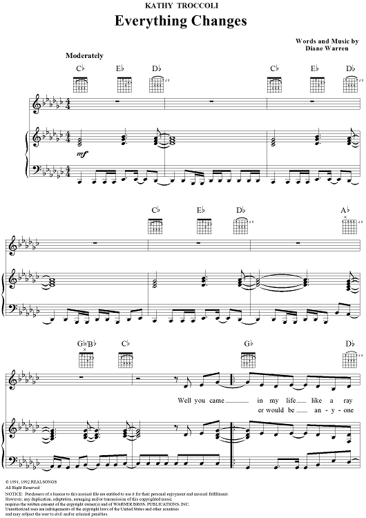 Digital Sheet Music for Everything Changes by Diane Warren, Kathy Troccoli scored for Piano/Vocal/Chords; id:110795