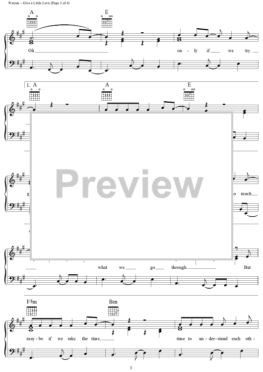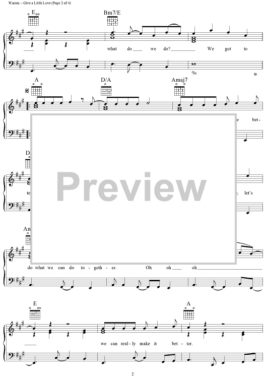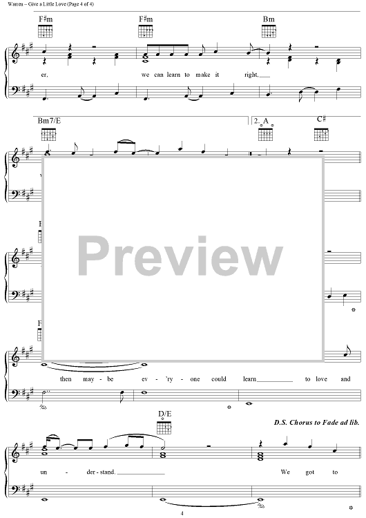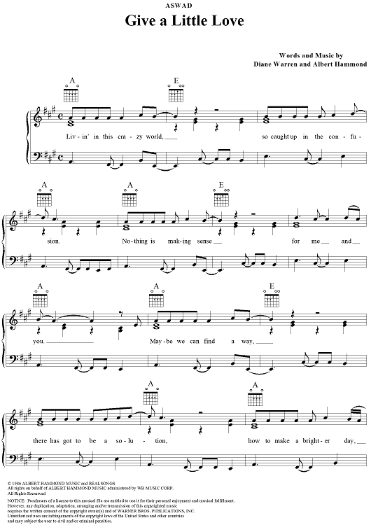 Digital Sheet Music for Give A Little Love by Diane Warren, Albert Hammond, Aswad scored for Piano/Vocal/Chords; id:111552