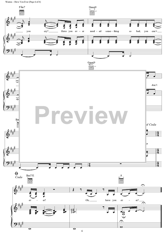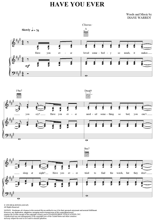 Digital Sheet Music for Have You Ever by Diane Warren, Brandy scored for Piano/Vocal/Chords; id:112699