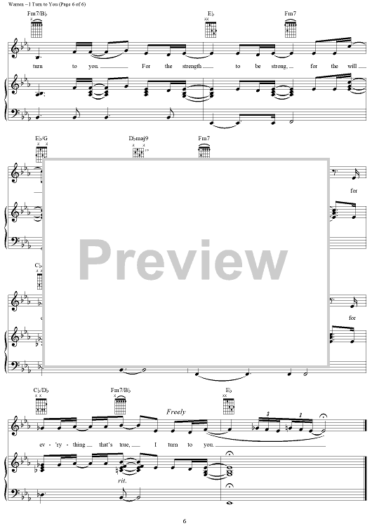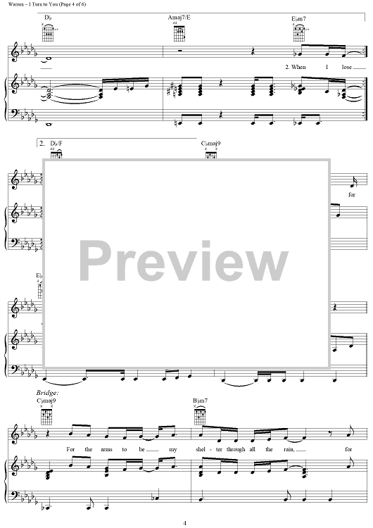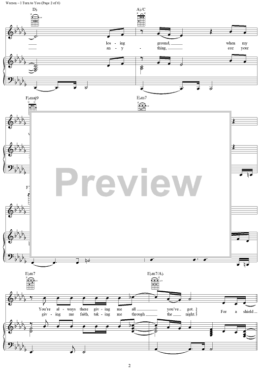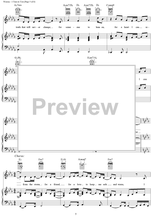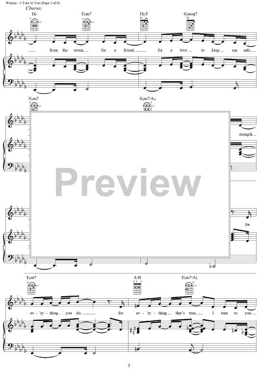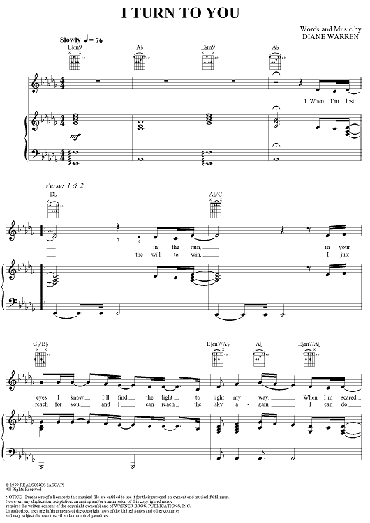 Digital Sheet Music for I Turn To You by Diane Warren, Christina Aguilera scored for Piano/Vocal/Chords; id:191430