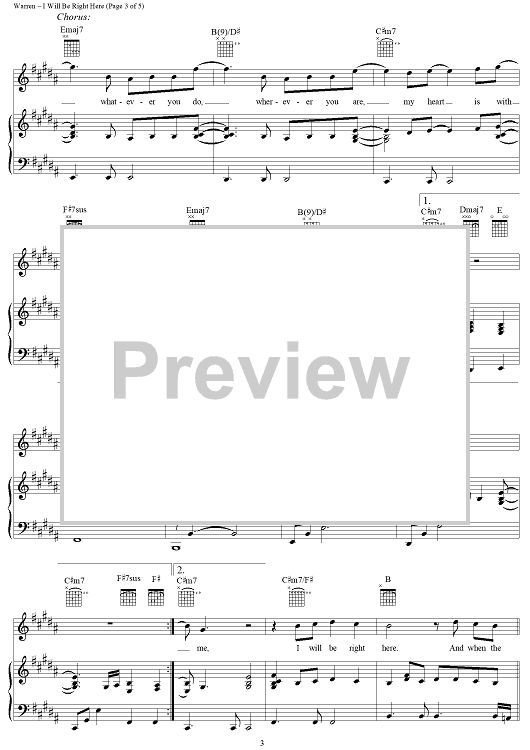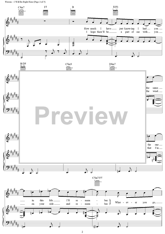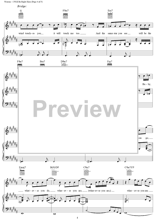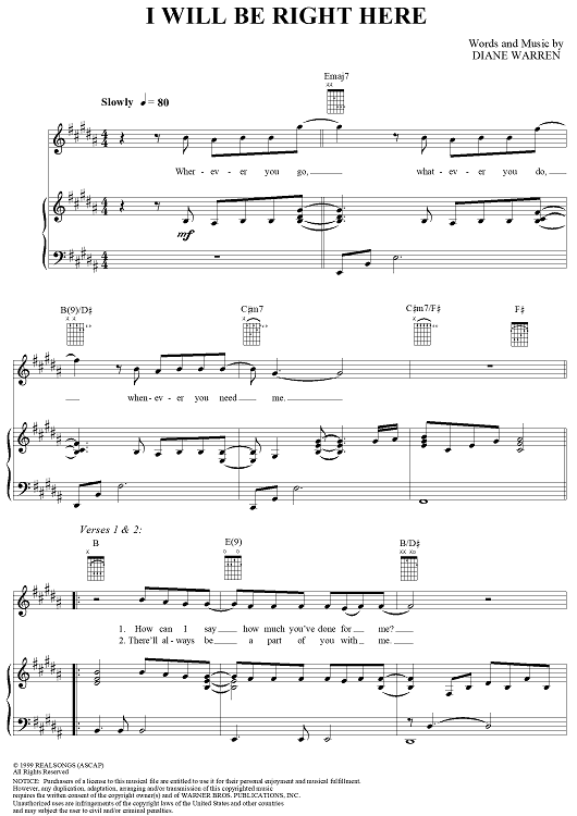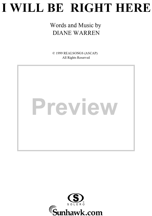 Digital Sheet Music for I Will Be Right Here by Diane Warren, All-4-One scored for Piano/Vocal/Chords; id:118768