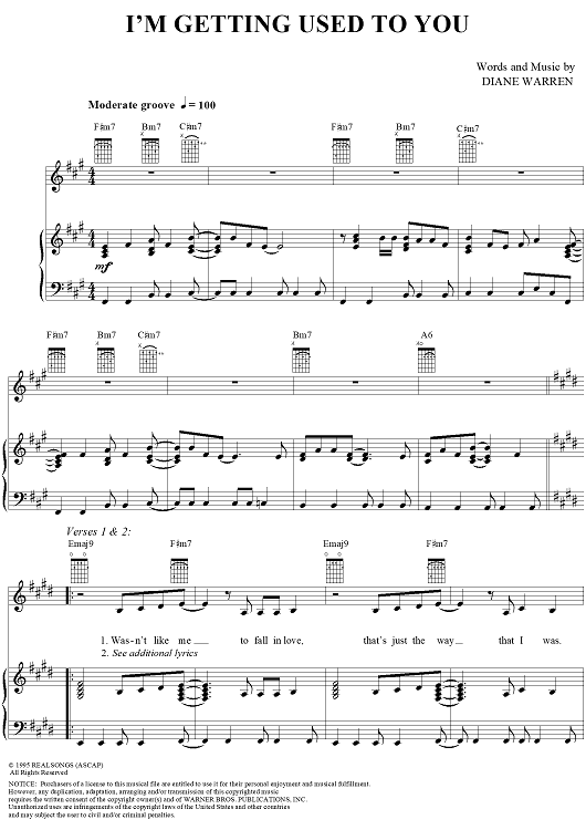 Digital Sheet Music for I'm Getting Used to You by Diane Warren, Selena scored for Piano/Vocal/Chords; id:116056