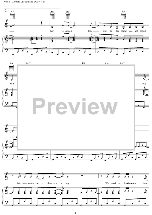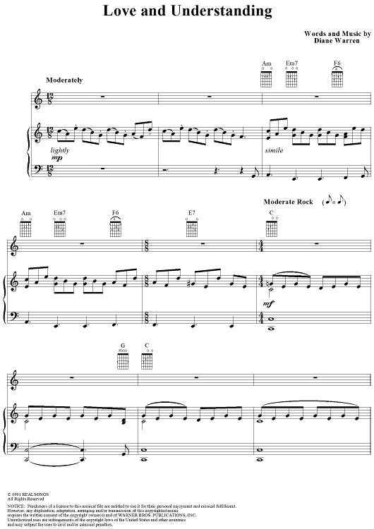 Digital Sheet Music for Love and Understanding by Diane Warren, Cher scored for Piano/Vocal/Chords; id:262569