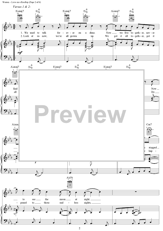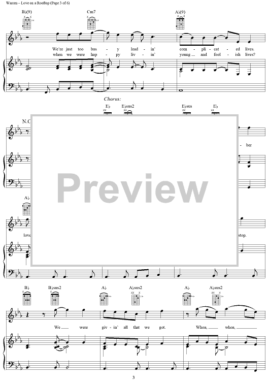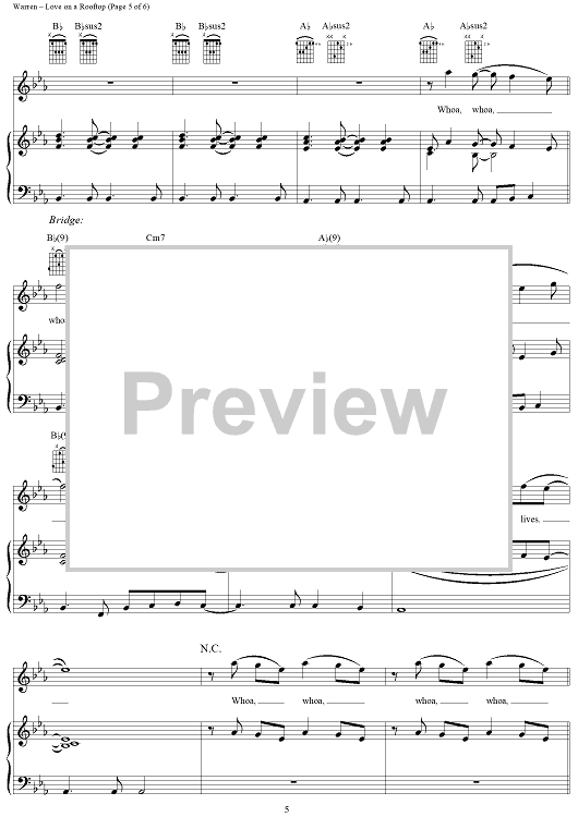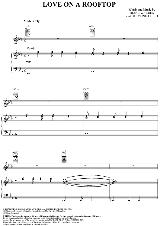 Digital Sheet Music for Love on a Rooftop by Diane Warren, Desmond Child, Ronnie Spector scored for Piano/Vocal/Chords; id:286843