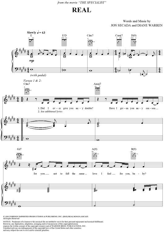 Digital Sheet Music for Real by Diane Warren, Jon Secada, Donna Allen scored for Piano/Vocal/Chords; id:257677