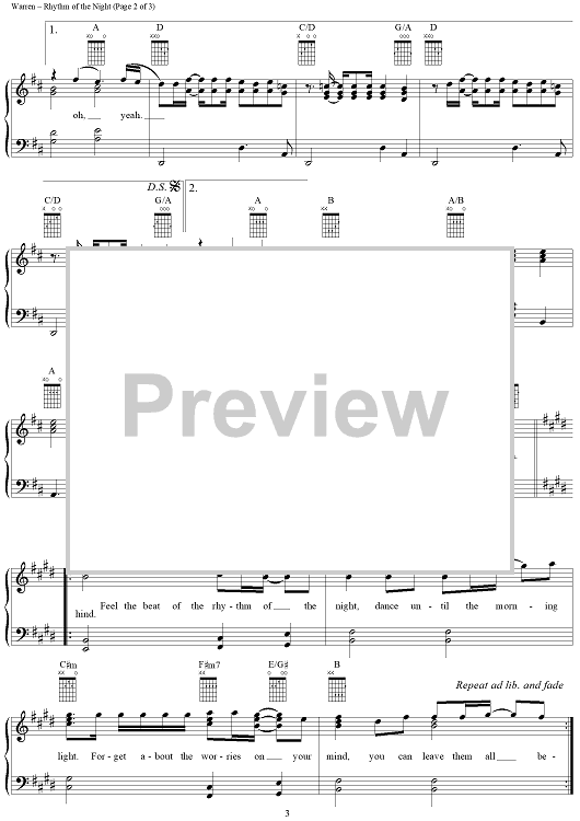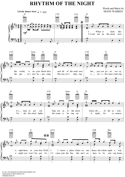 Digital Sheet Music for Rhythm of the Night by Diane Warren, DeBarge scored for Piano/Vocal/Chords; id:120774