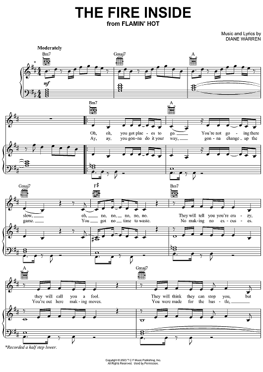 Digital Sheet Music for The Fire Inside (from Flamin' Hot) by Diane Warren, Becky G scored for Piano/Vocal/Chords; id:501074