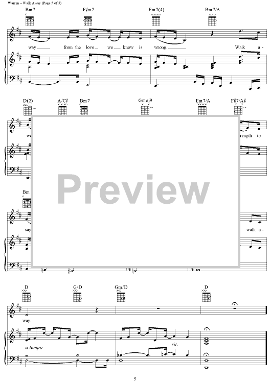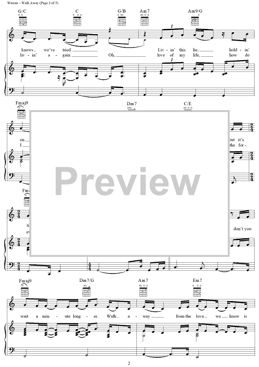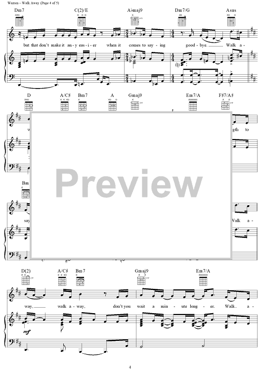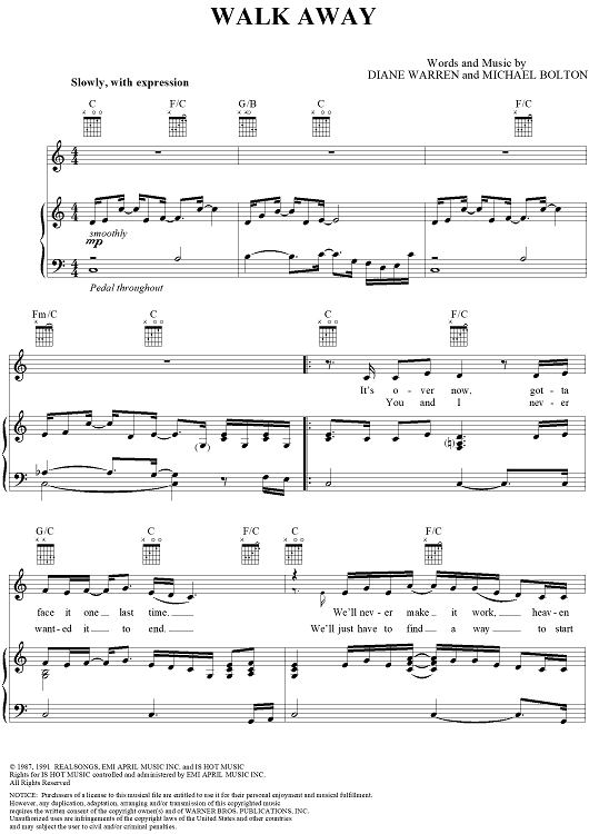 Digital Sheet Music for Walk Away by Diane Warren, Michael Bolton scored for Piano/Vocal/Chords; id:113211