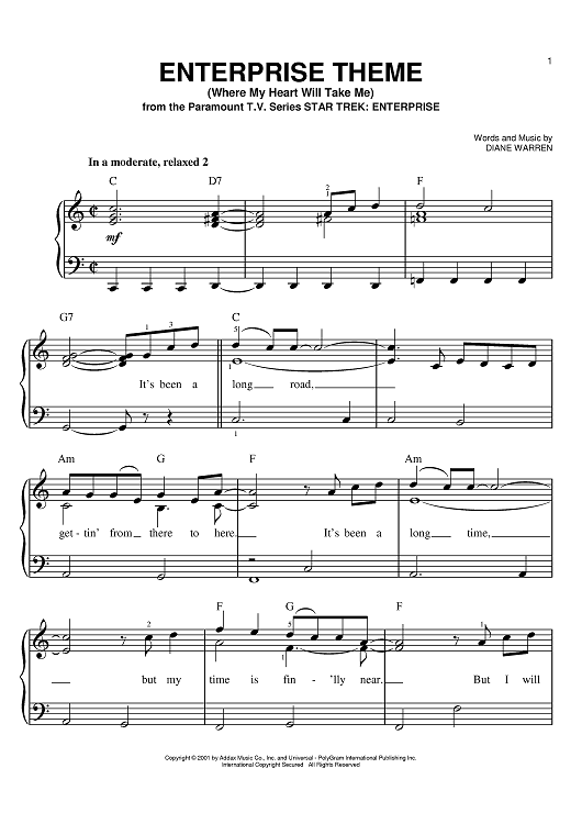 Digital Sheet Music for Where My Heart Will Take Me by Diane Warren scored for Easy Piano; id:373281
