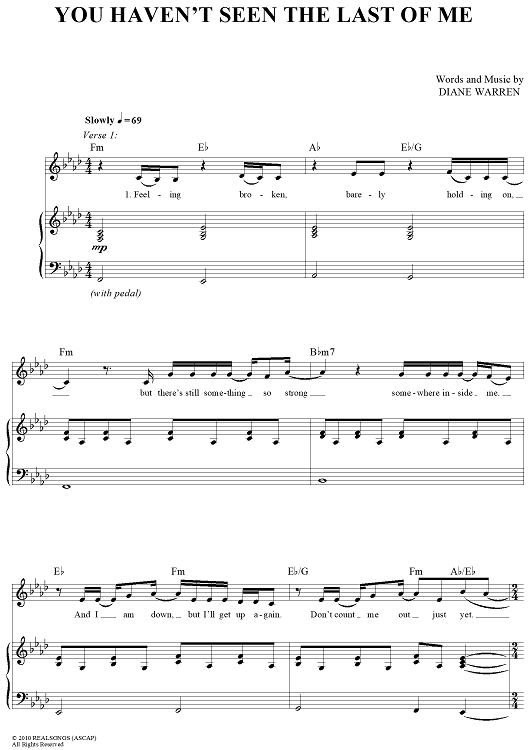 "You Haven't Seen the Last of Me" Sheet Music by Cher
