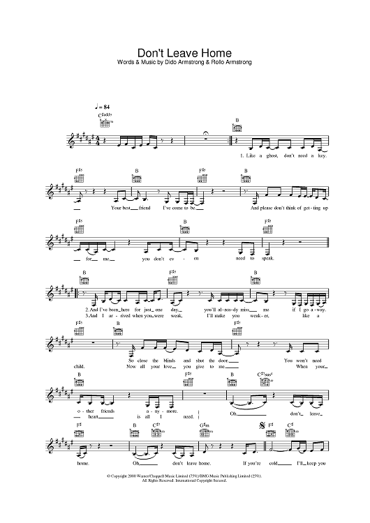 Digital Sheet Music for Don't Leave Home by Dido scored for Lead Sheet; id:378209
