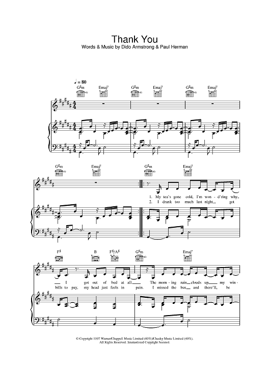 Digital Sheet Music for Thank You by Dido scored for Piano/Vocal/Chords; id:378415