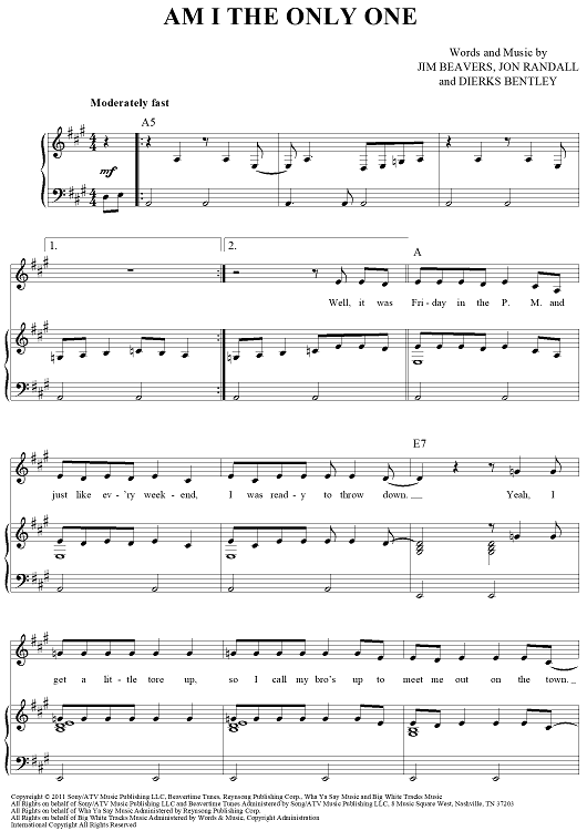 Digital Sheet Music for Am I The Only One by Dierks Bentley, Jim Beavers, Jon Randall scored for Piano/Vocal/Chords; id:428764