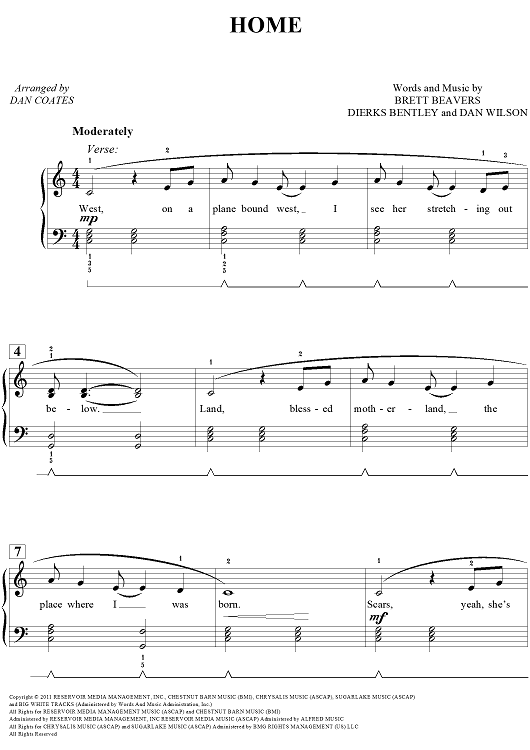 Digital Sheet Music for Home by Dan Coates, Dan Wilson, Dierks Bentley, Brett Beavers scored for Easy Piano/Vocal; id:463842