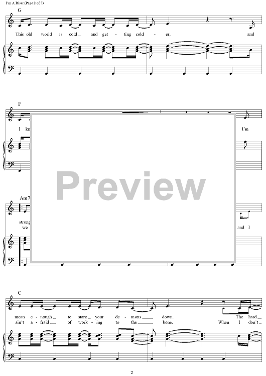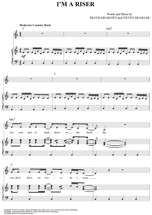 Digital Sheet Music for I'm A Riser by Dierks Bentley, Travis Meadows, Steven Moakler scored for Piano/Vocal/Chords; id:463418