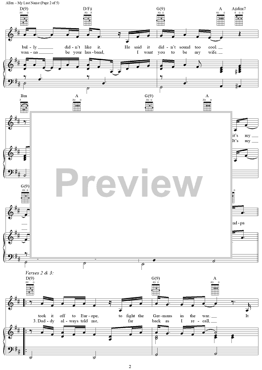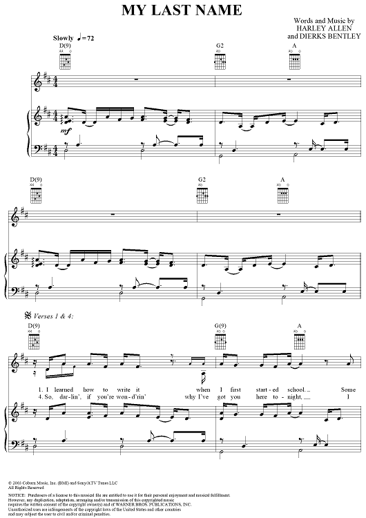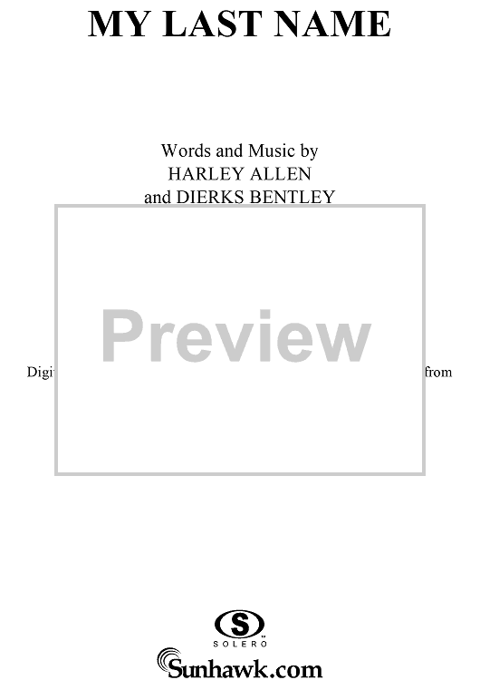 Digital Sheet Music for My Last Name by Harley Allen, Dierks Bentley scored for Piano/Vocal/Chords; id:305373