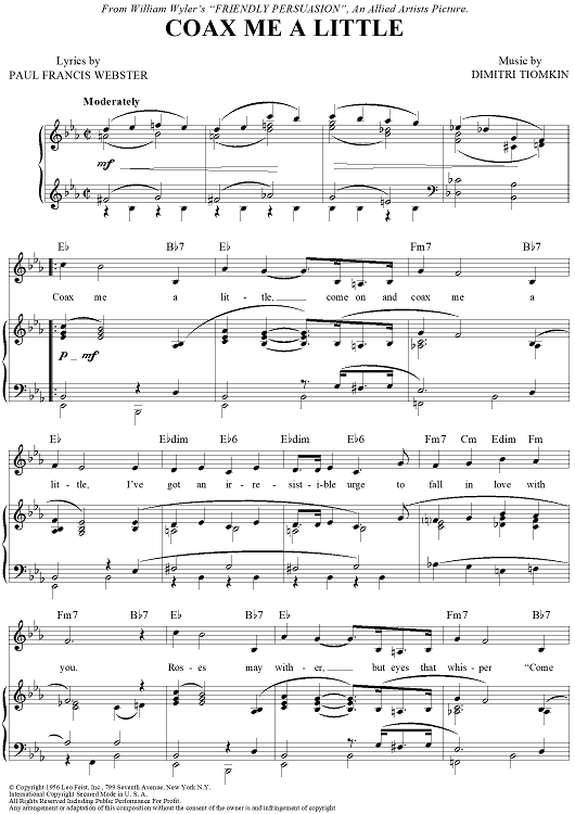 "Coax Me A Little" Sheet Music by Dimitri Tiomkin