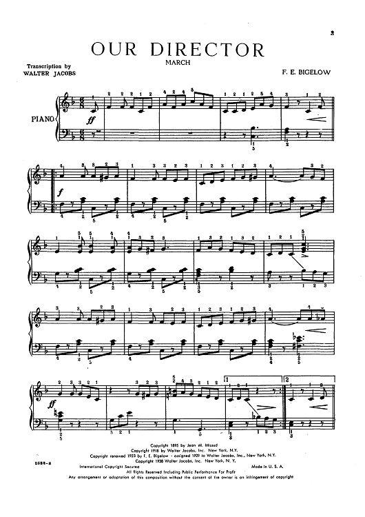 Digital Sheet Music for Our Director by Walter Jacobs, F. E. Bigelow scored for Piano Solo; id:433180