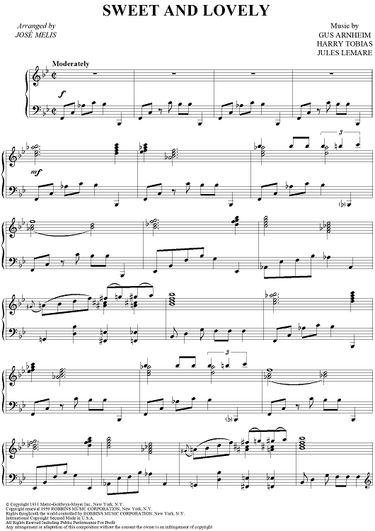 Digital Sheet Music for Sweet and Lovely by Gus Arnheim, Harry Tobias, Jules Lemare, Jose Melis scored for Piano Solo; id:419218