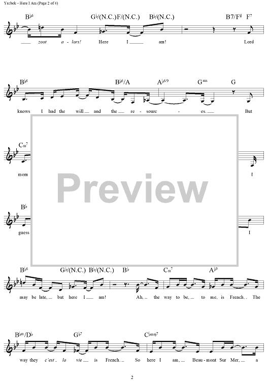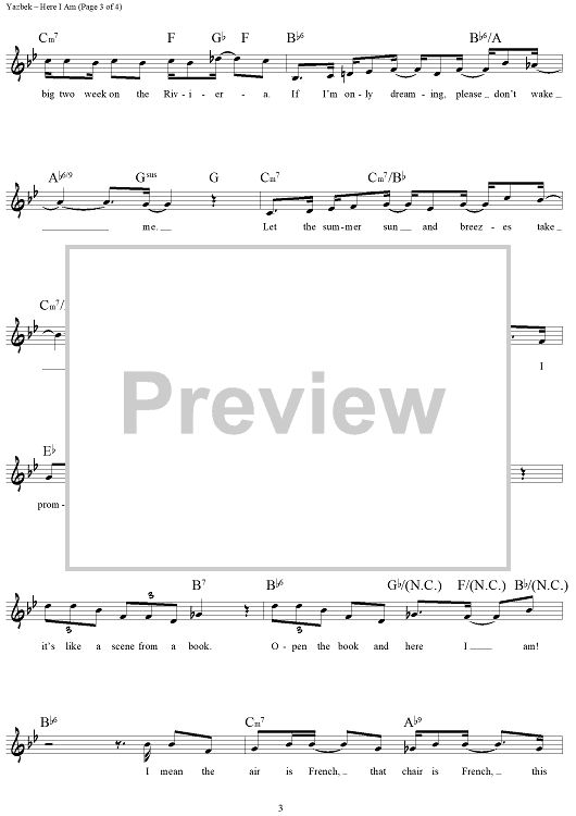 Digital Sheet Music for Here I Am by David Yazbek scored for Lead Sheet; id:442044