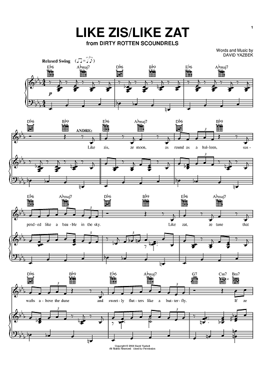 "Like Zis/Like Zat" Sheet Music by David Yazbek