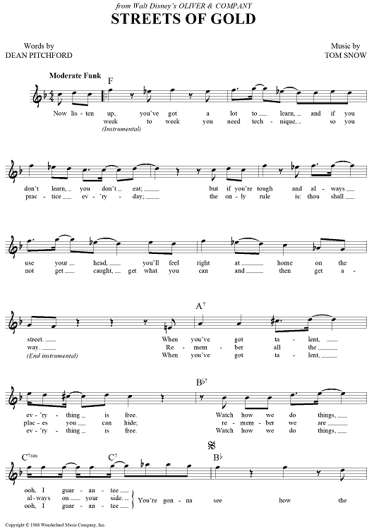 Digital Sheet Music for Streets Of Gold by Dean Pitchford, Tom Snow scored for Lead Sheet; id:444738