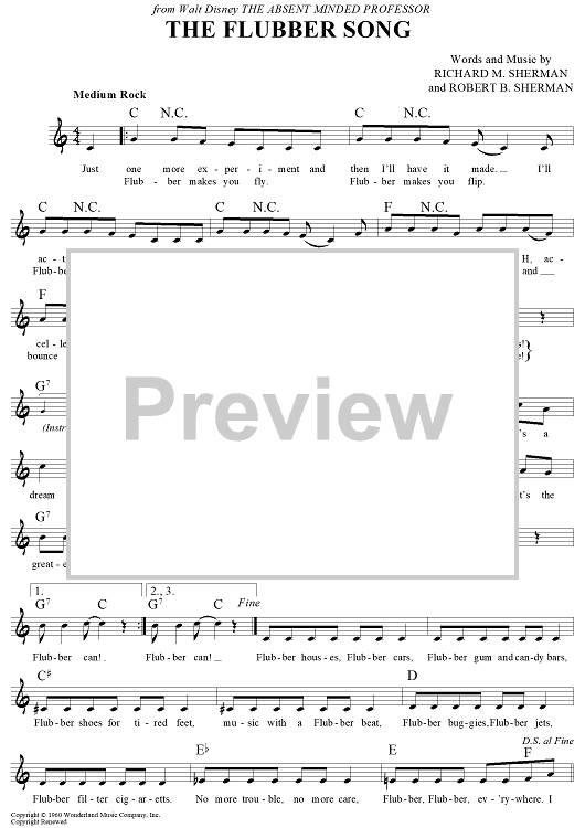 Digital Sheet Music for The Flubber Song by Richard M. Sherman, Robert B. Sherman scored for Lead Sheet; id:440131