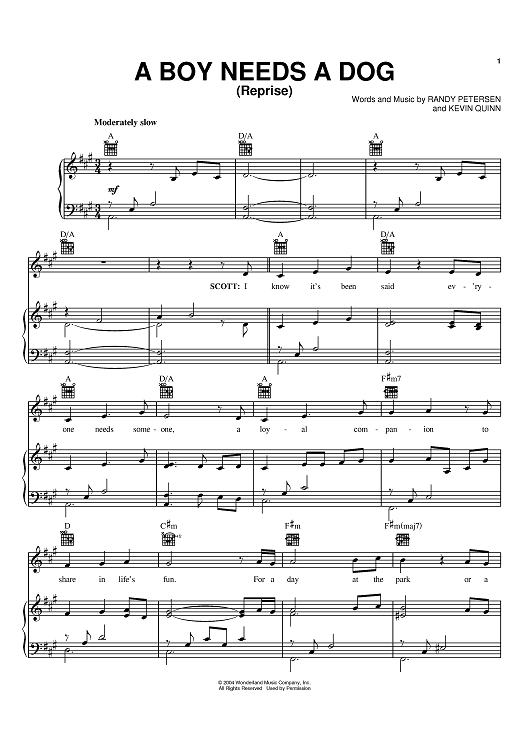 Digital Sheet Music for A Boy Needs A Dog (Reprise) by Randy Petersen, Kevin Quinn scored for Piano/Vocal/Chords; id:373432