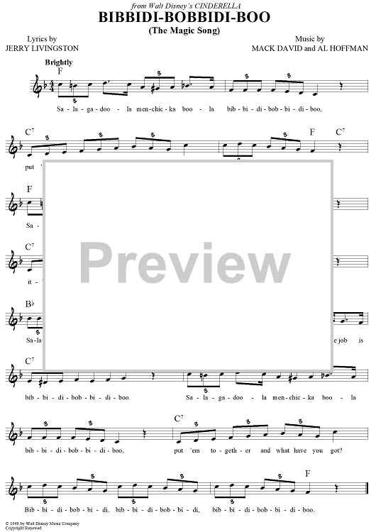 Digital Sheet Music for Bibbidi-Bobbidi-Boo (The Magic Song) by Jerry Livingston, Mack David, Al Hoffman scored for Lead Sheet; id:439636