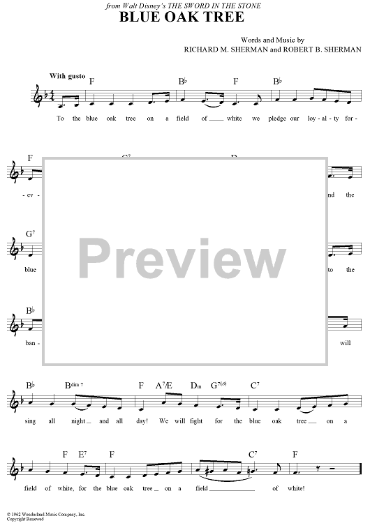 Digital Sheet Music for Blue Oak Tree by Richard M. Sherman, Robert B. Sherman scored for Lead Sheet; id:439637