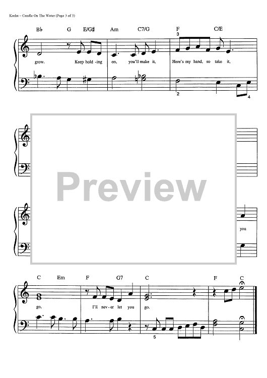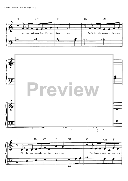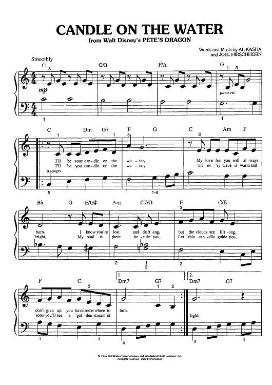 Digital Sheet Music for Candle On The Water by Al Kasha, Joel Hirschhorn scored for Big Note Piano; id:445005