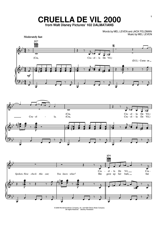 Digital Sheet Music for Cruella De Vil 2000 by Camara Kambon, Jack Feldman, Mel Leven scored for Piano/Vocal/Chords; id:393939