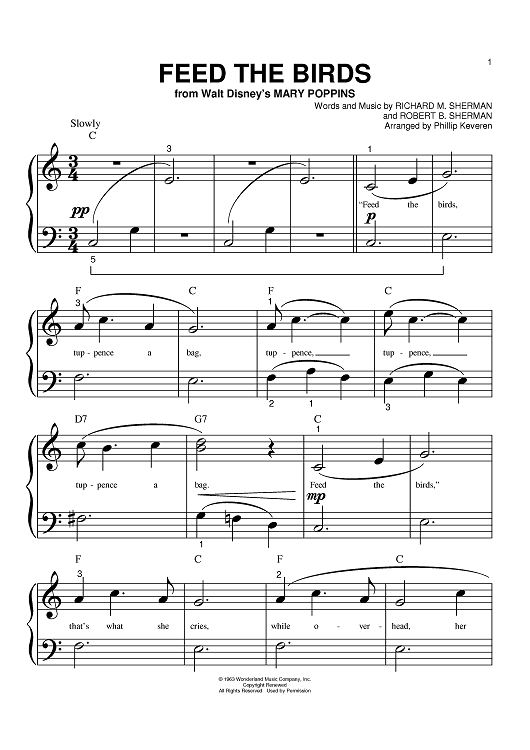 Digital Sheet Music for Feed The Birds by Richard M. Sherman, Robert B. Sherman, Phillip Keveren scored for Big Note Piano; id:382263